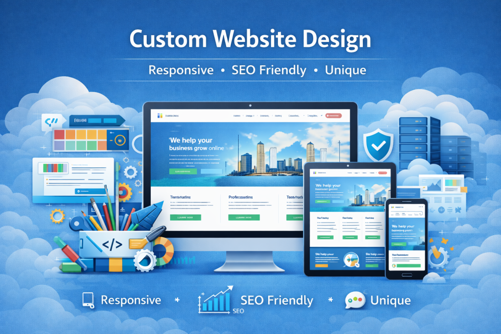 We provide professional Custom Website Design in Noida tailored to your brand identity and business goals. Every website is designed from scratch with proper layout planning, user-friendly navigation and conversion-focused structure. Our custom website services includes